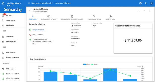 Match 360 supports multi-domain use cases, including customers, households, products, and even external data sources, and it comes with governance and stewardship features that satisfy the needs of highly regulated enterprises.